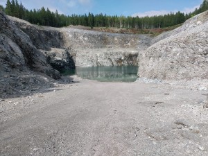 По западному борту карьера обнажаются малоизмененные ожелезненные известняки, а по правому (восточному) неизменные и скарнированные вулканиты.