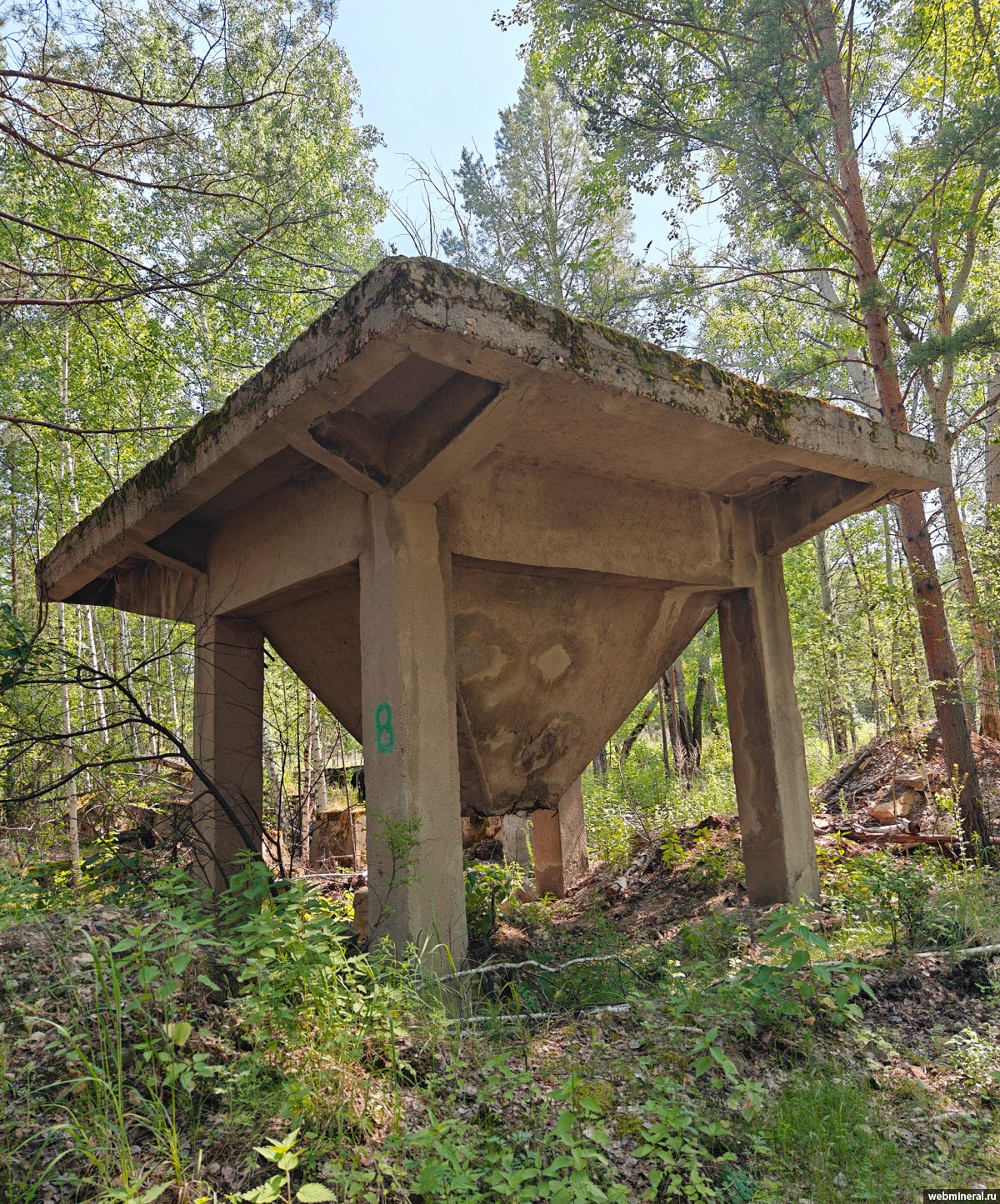 Описание: Бетонное сооружение в лесу. Вероятно, загрузочный бункер (?)... Или часть дробилки.