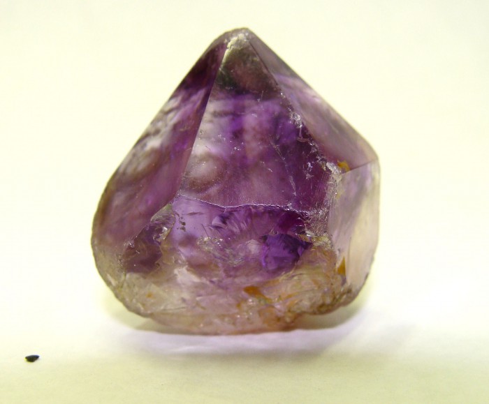 Аметист - слабоокатанный высококачественный кристалл, из тех, о которых А. Е. Ферсман писал, будто они при искусственном освещении загораются кровавым отблеском...