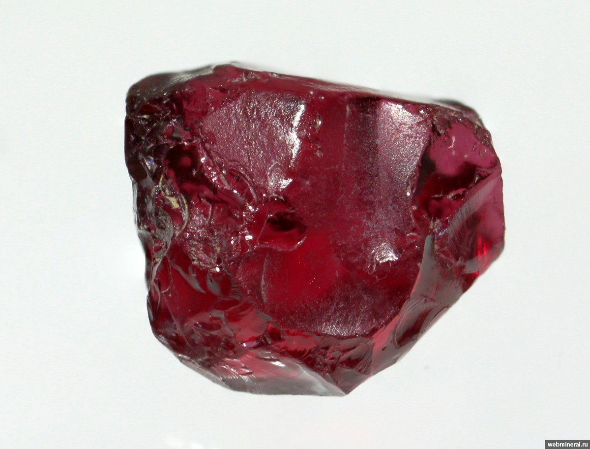 Фрагмент ярко-малинового кристалла граната-пиропа ювелирного качества.