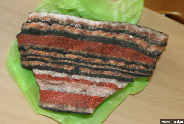 Фрагмент рудного пласта с явно выраженным чередованием слоев: сильвин-галит-глина.