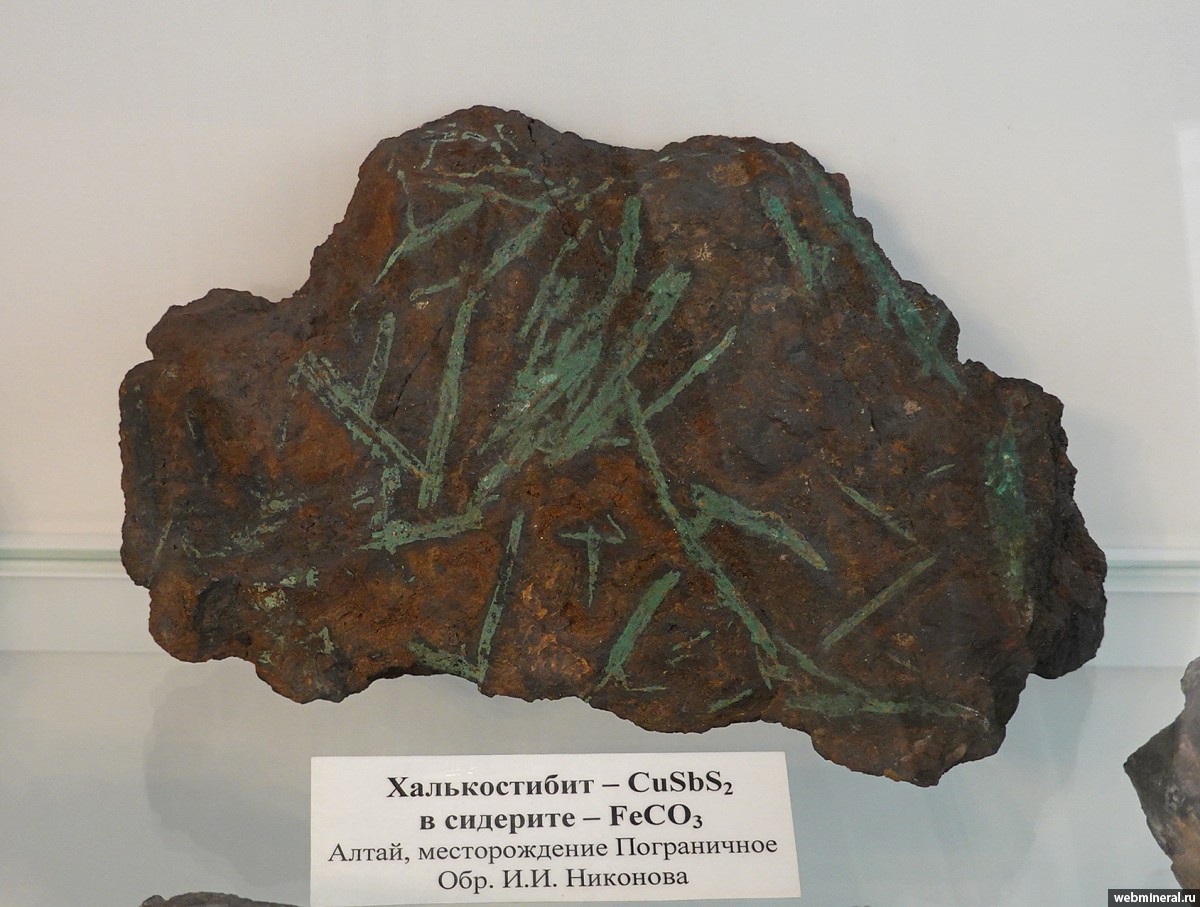 Фотография минерала Халькостибит, Сидерит. Пограничное месторождение.