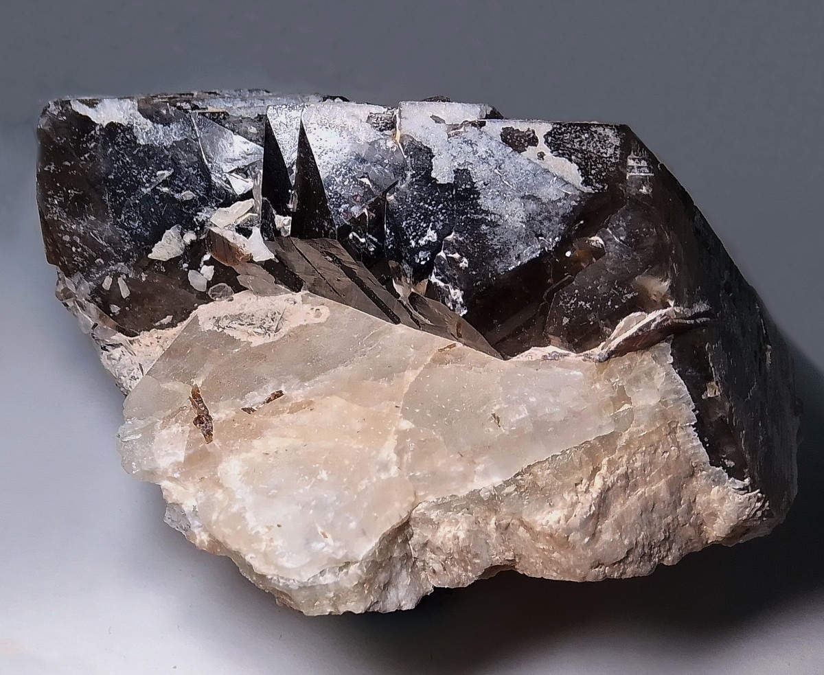 Кристаллы дымчатого кварца на адуляре. Образец из коллекции Истомина И.Н.