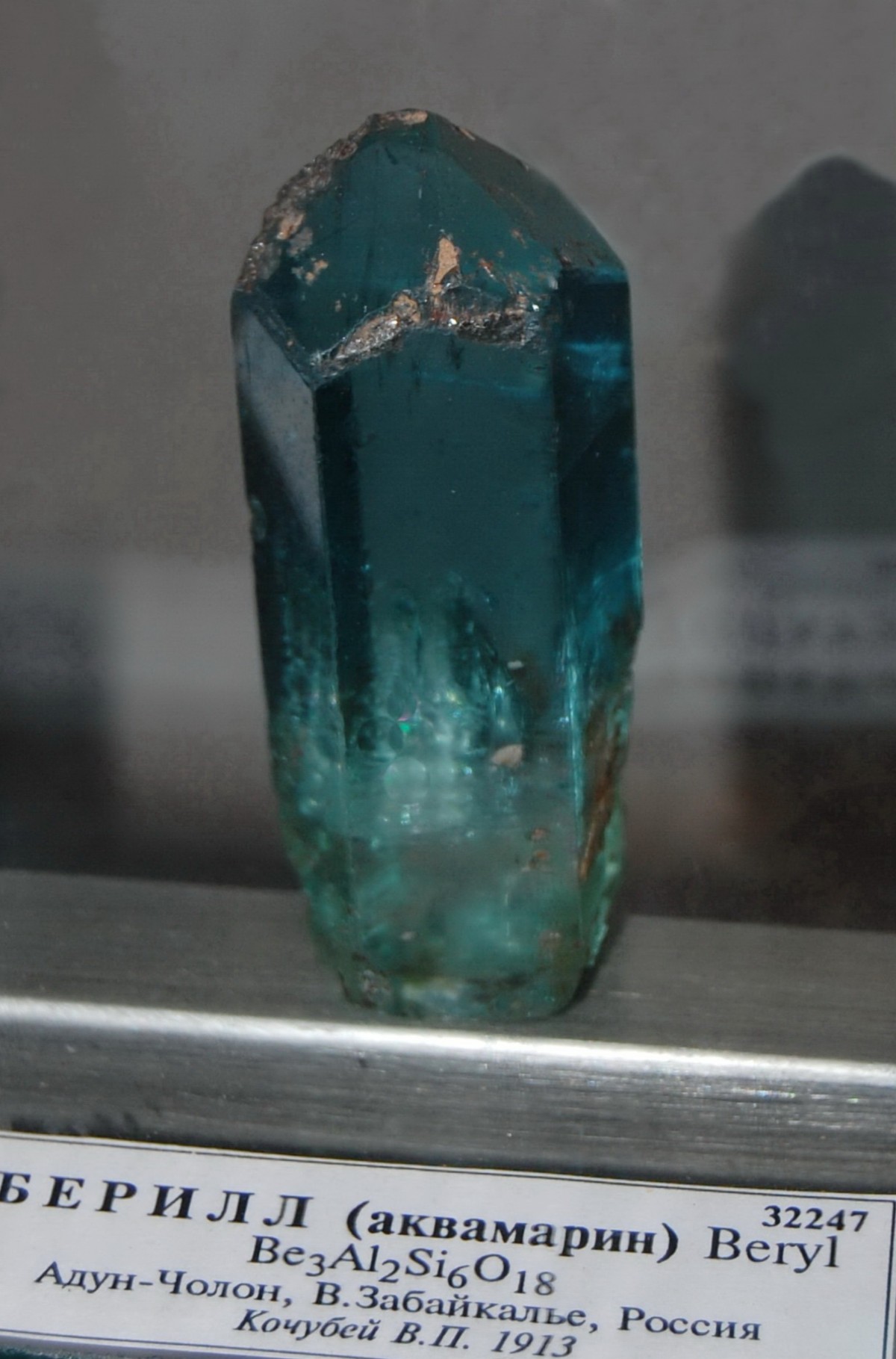 Кристалл аквамарина. Минералогический музей им. А.Е. Ферсмана, № 32247, Кочубей В.П., 1913 г. Из коллекции князя П.А. Кочубея. Фото - 2009 г.