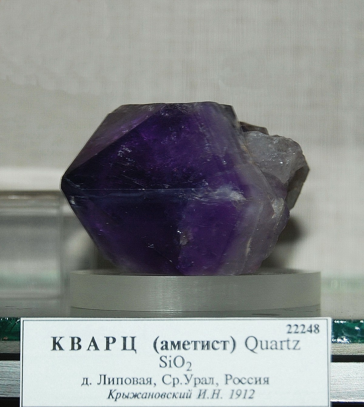 Скипетровидный кристалл аметиста. (Минералогический музей им. А.Е. Ферсмана, № 22248, Крыжановский И.Н., 1912 г). Фото - 2009 г.