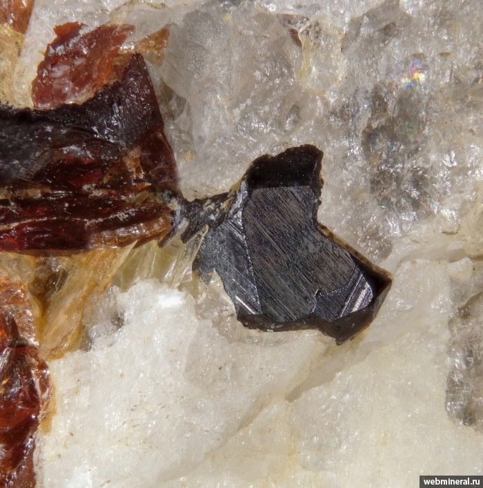 На дополнительном фото хорошо огранённый кристалл спессартина (тоже около 1 мм).