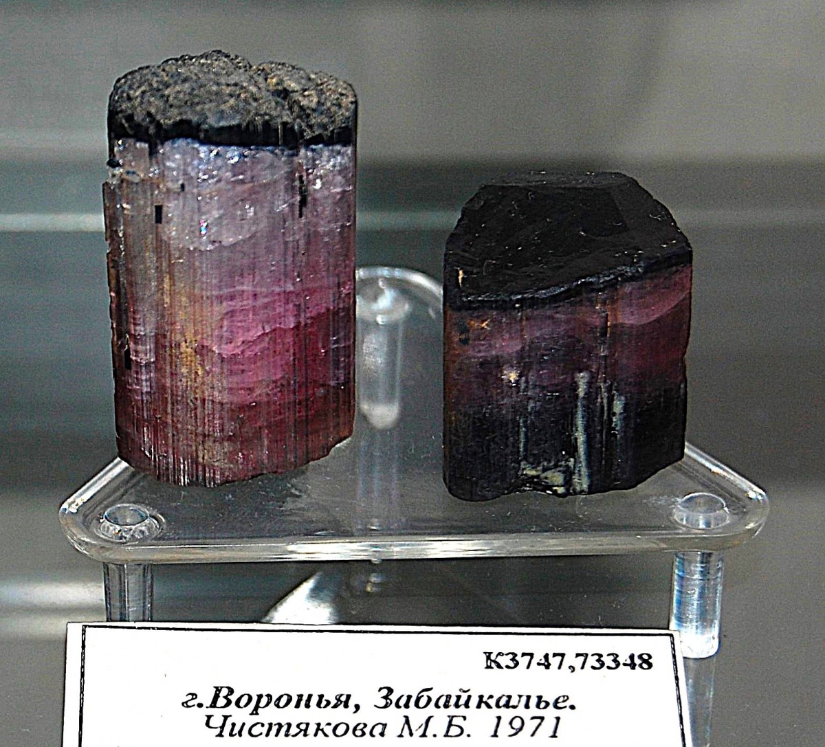 Кристаллы эльбаита. Минералогический музей им. А.Е. Ферсмана, №№ к 3747 и 73348, Чистякова М.Б., 1971. г. Фото - 2009 г