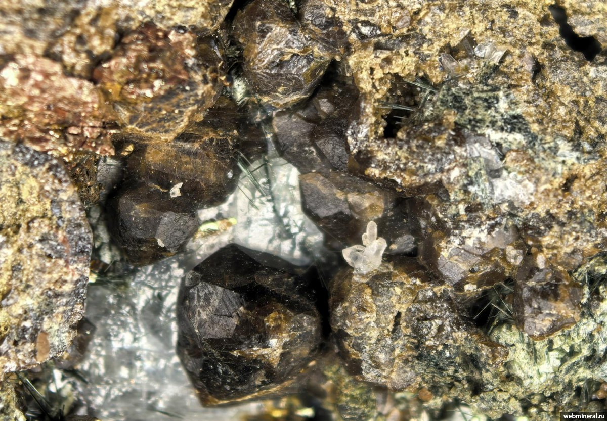 Фотография минерала Андрадит, Пирит, Актинолит, Кварц. Хепоселькя месторождение.