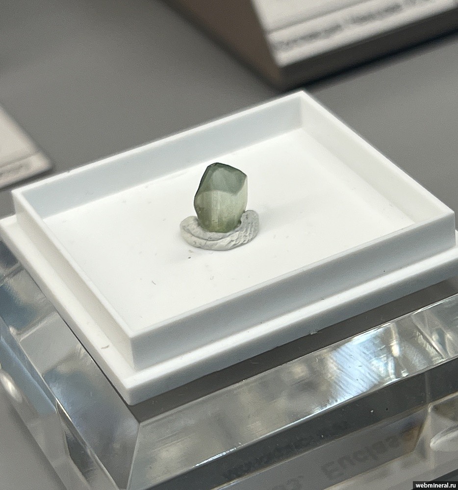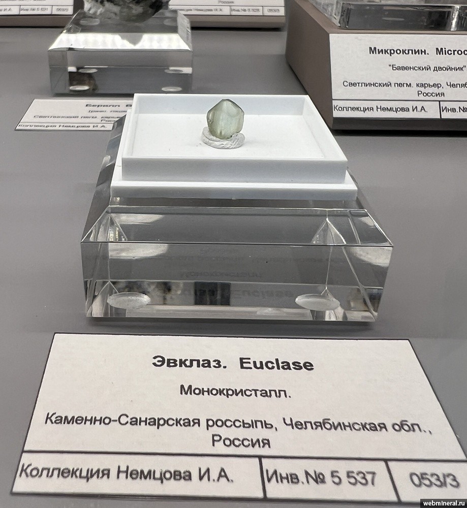 Слегка окатанный прозрачный кристалл эвклаза. Образец из коллекции Немцова И.А.