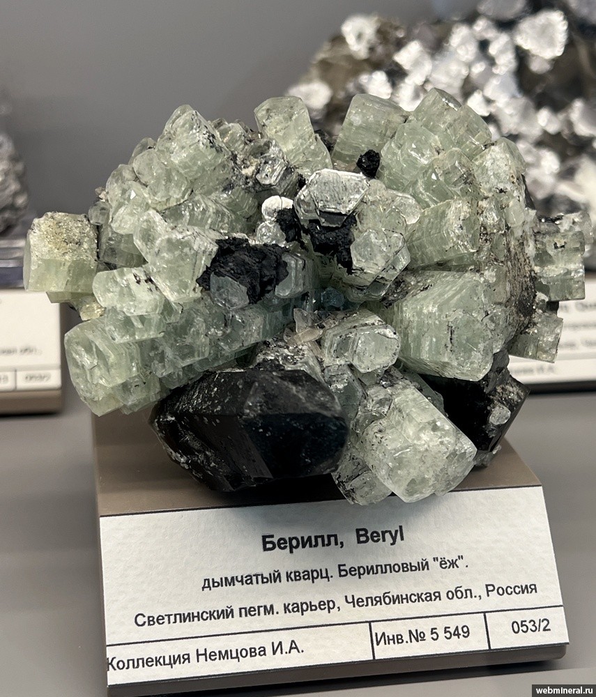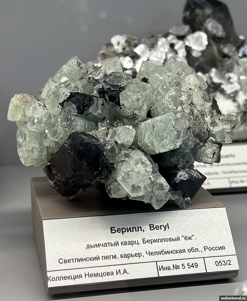 Радиальный сросток кристаллов берилла с кристаллами дымчатого кварца. Образец из коллекции Немцова И.А.