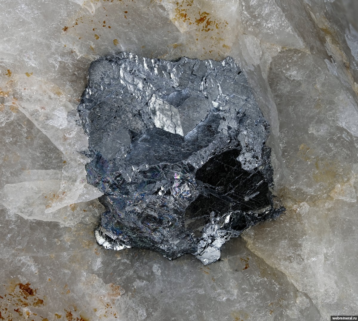 Кристалл галенита размером 14х15 мм в жильном кварце. Сборы Кузнецова А.М.