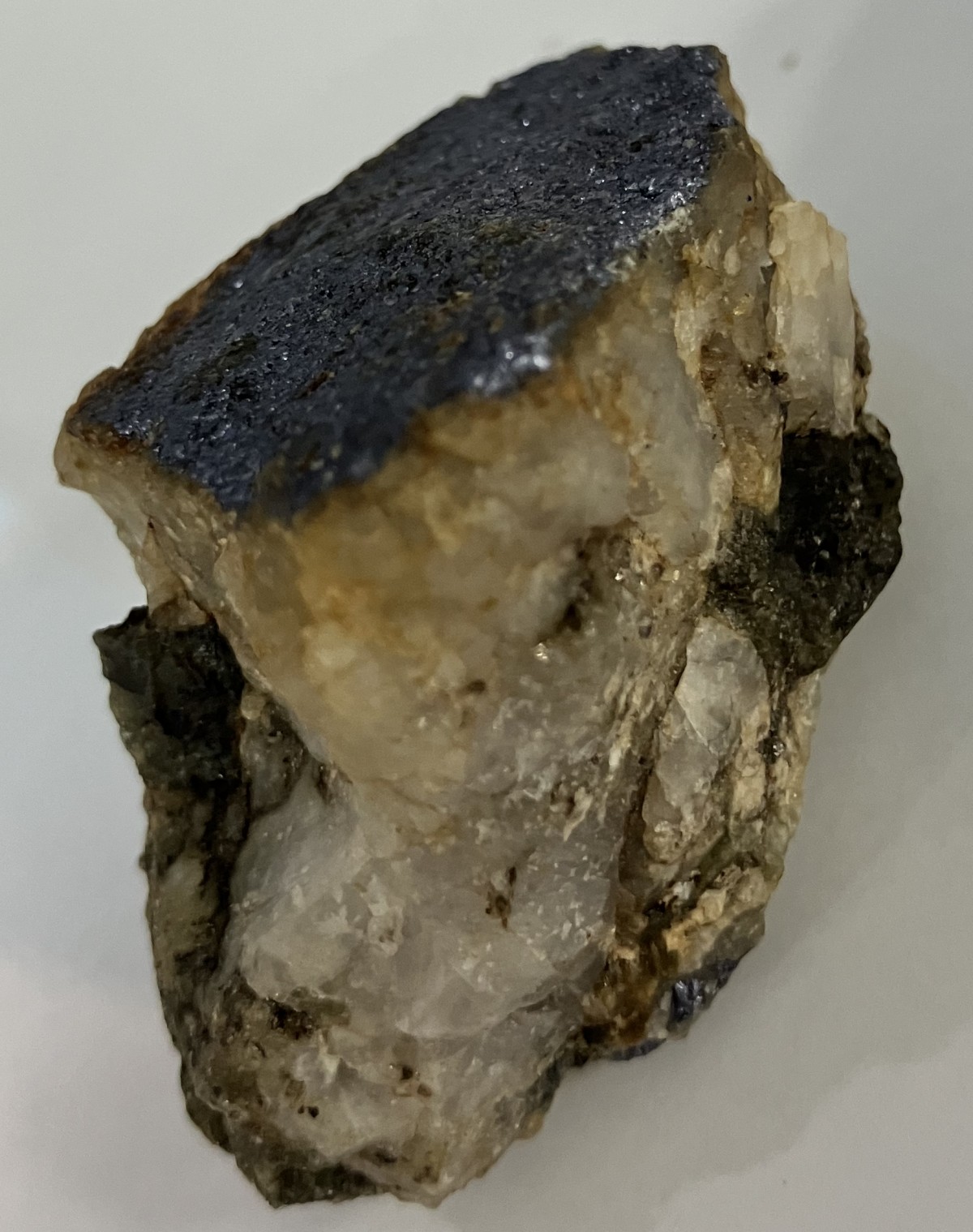 Мелкокристаллический молибденит на поверхности зальбанда кварцевого прожилка - обычная форма этого минерала на месторождении.