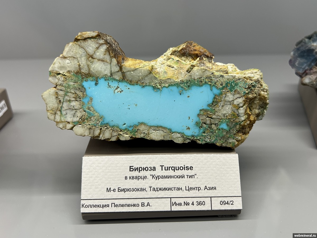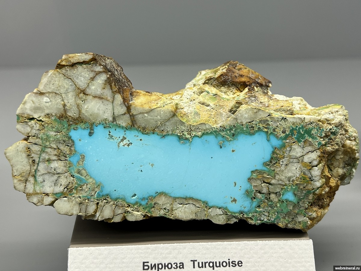 Полированный срез желвака бирюзы в кварцевом прожилке. Образец из коллекции Пелепенко В.А.