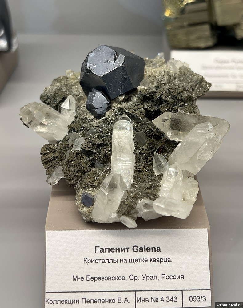 Кристаллы галенита размером до 2,5 см на щетке кварца. Образец из коллекции Пелепенко В.А.