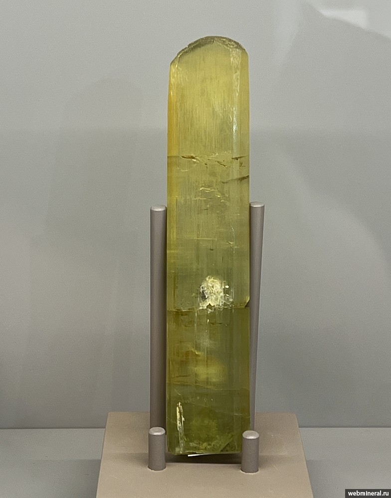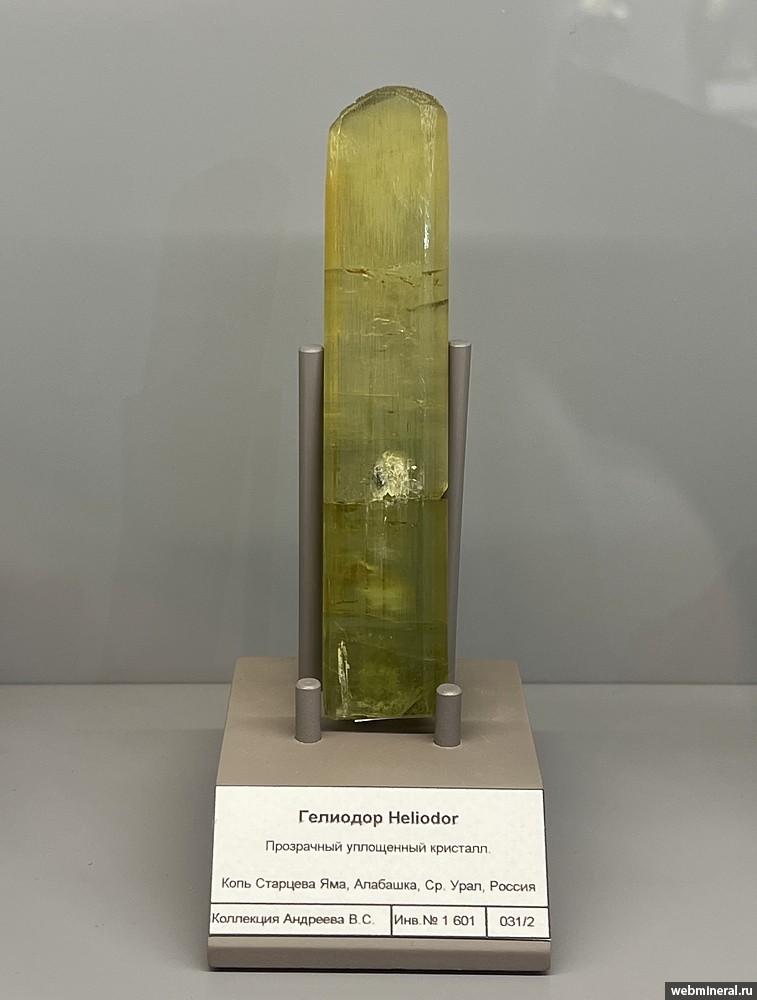 Прозрачный уплощенный кристалл желтого берилла (гелиодора). Образец из коллекции Андреева В.С.