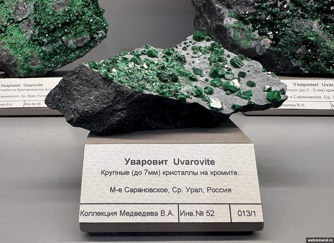 Крупные (до 7 мм) кристаллы уваровита на хромите. Образец из коллекции Медведева В.А.