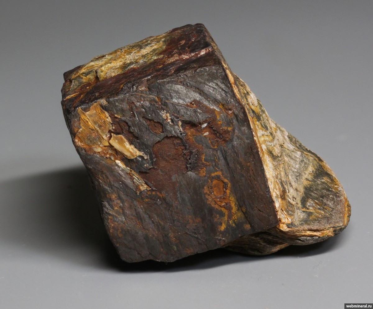 Псевдоморфоза лимонита по деформированному кубическому кристаллу пирита из хлоритового сланца.