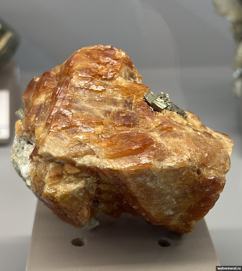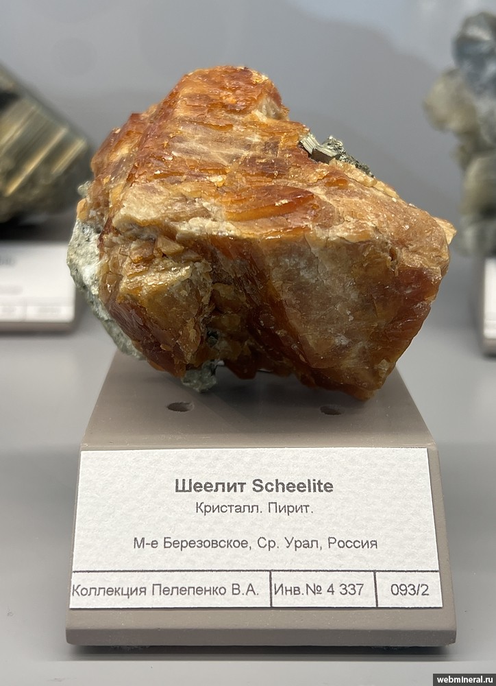 Кристалл шеелита с кристаллами пирита. Образец из коллекции Пелепенко В.А.