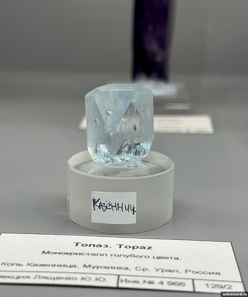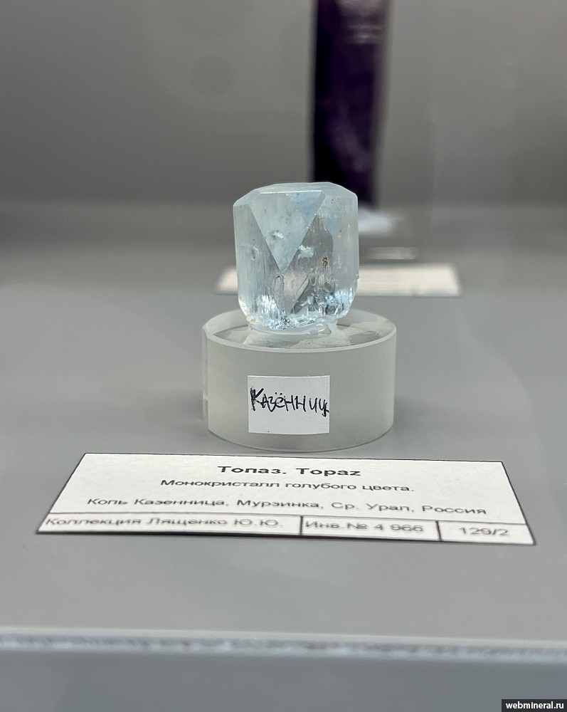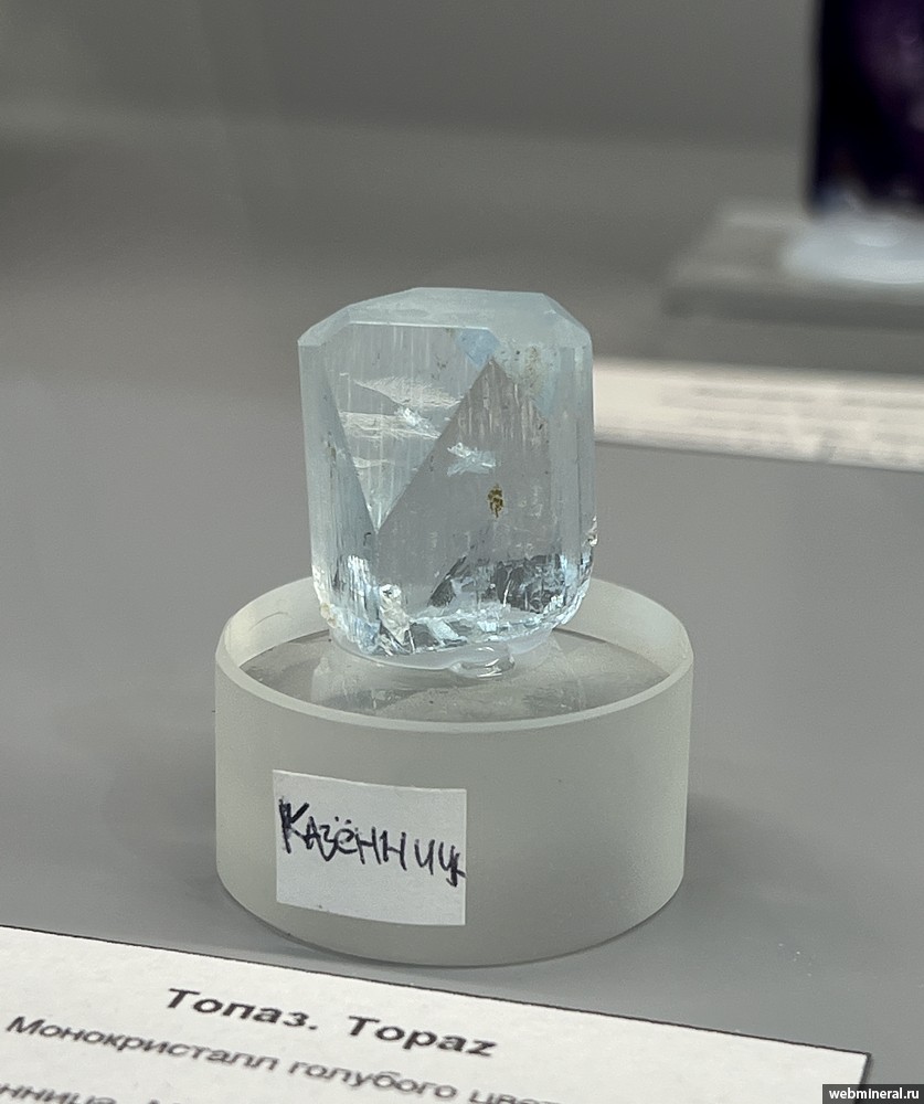 Прозрачный кристалл топаза голубого цвета. Образец из коллекции Лященко Ю.Ю.