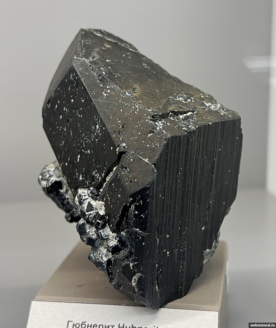 Крупный кристалл гюбнерита с флюоритом и молибденитом. Образец из коллекции Пелепенко В.А.