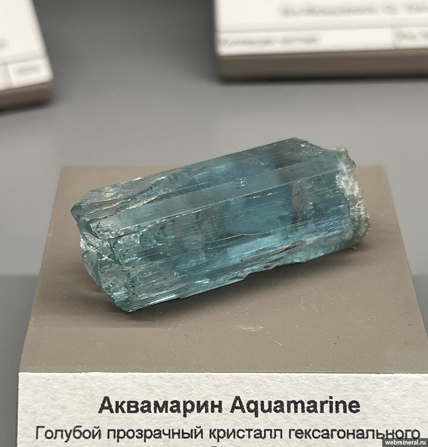Прозрачный кристалл голубого берилла (аквамарина). Образец из частной коллекции.