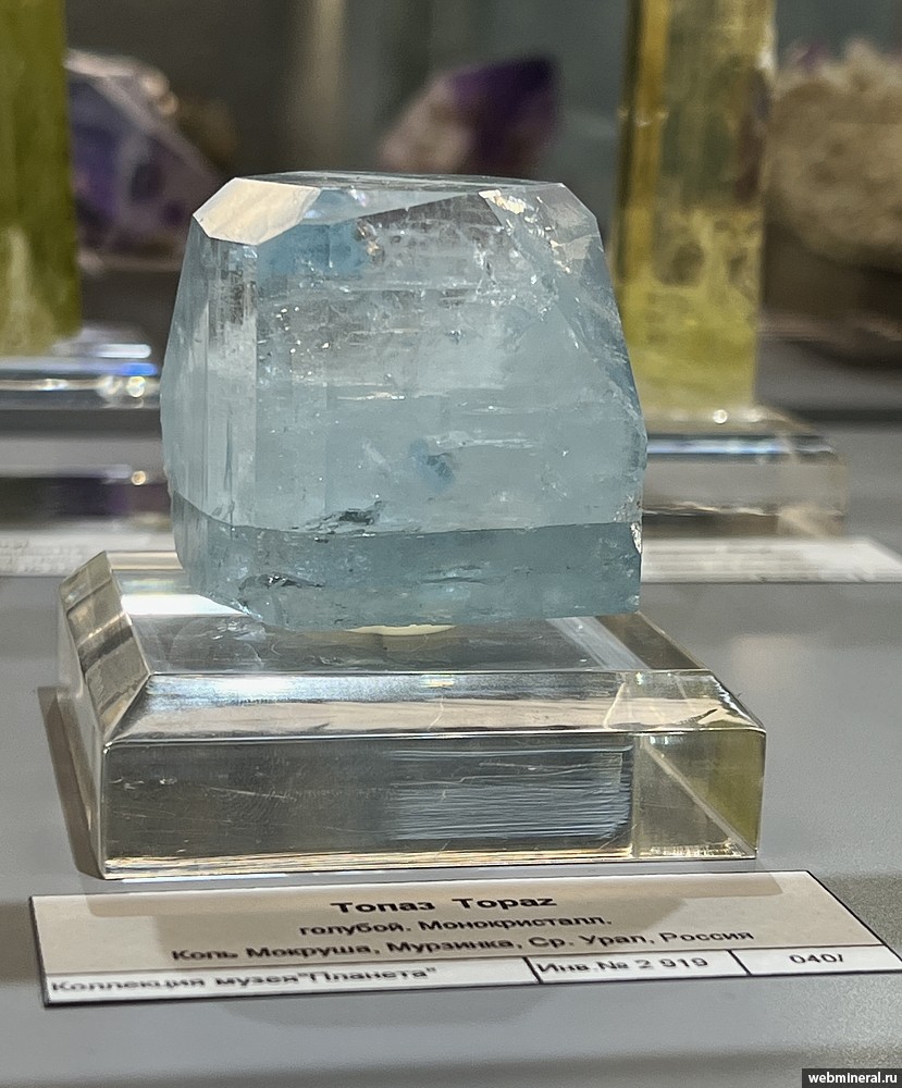 Кристалл голубого топаза. Образец из коллекции музея "Планета".