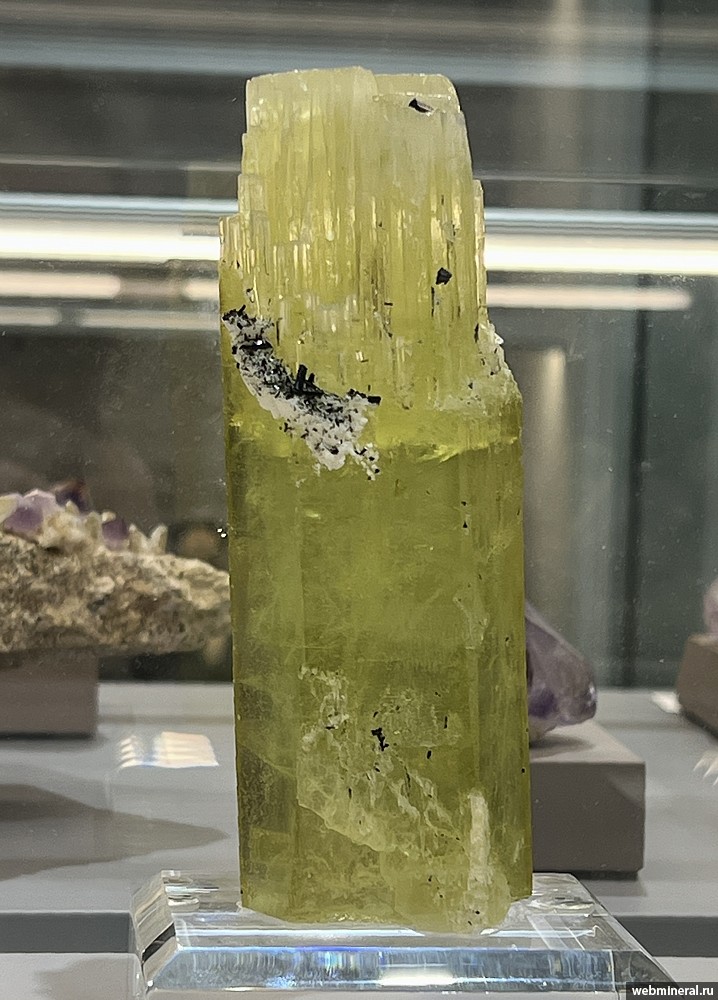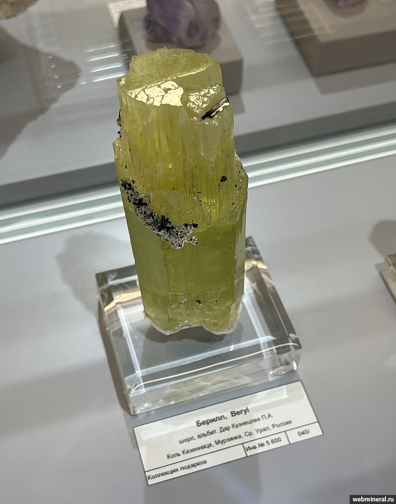Кристалл желтого берилла (гелиодора) с мелкими кристаллами шерла и альбитом. Коллекция подарков. Дар Кузнецова П.А.