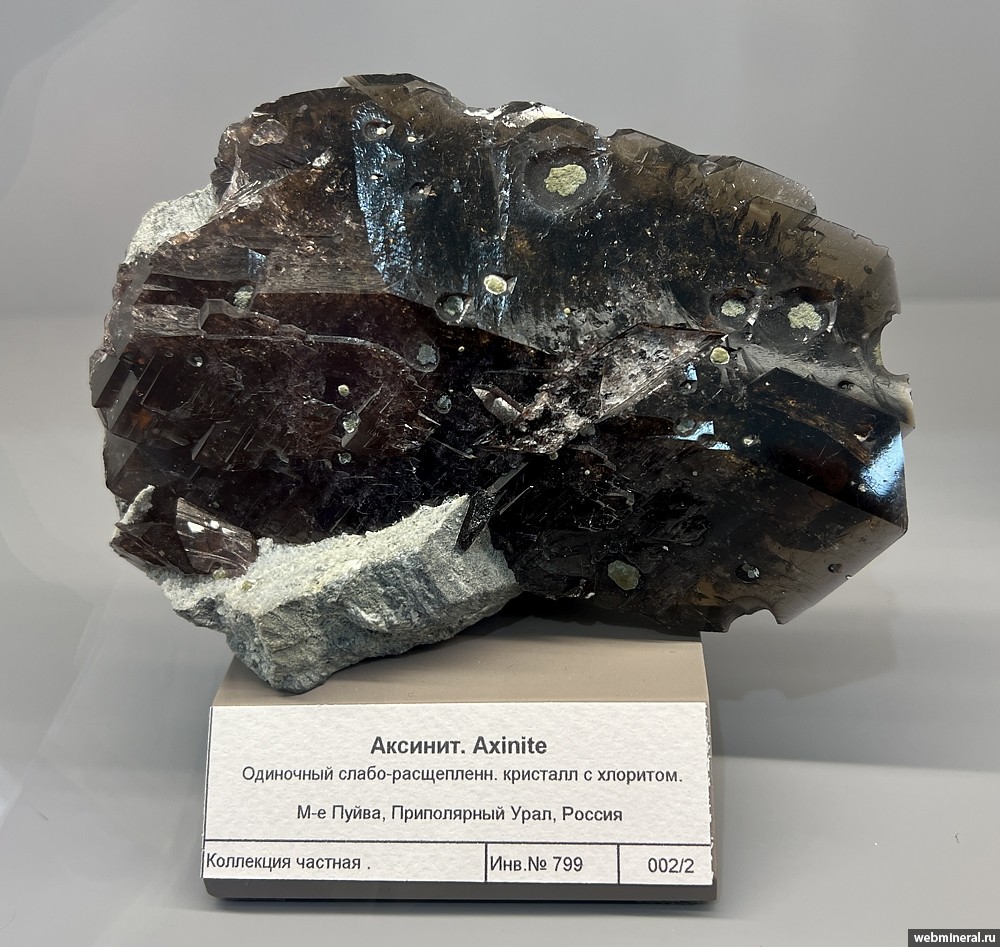Одиночный слаборасщепленный кристалл аксинита с хлоритом. Образец из частной коллекции