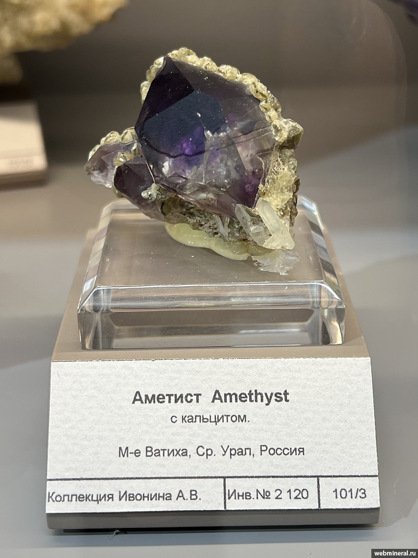 Кристалл аметиста с кальцитом. Образец из коллекции Ивонина А.В.