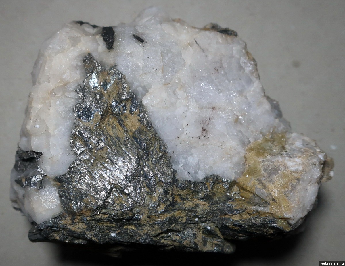 Фотография минерала Лёллингит, Кварц. Светлое (W-Sn) месторождение.