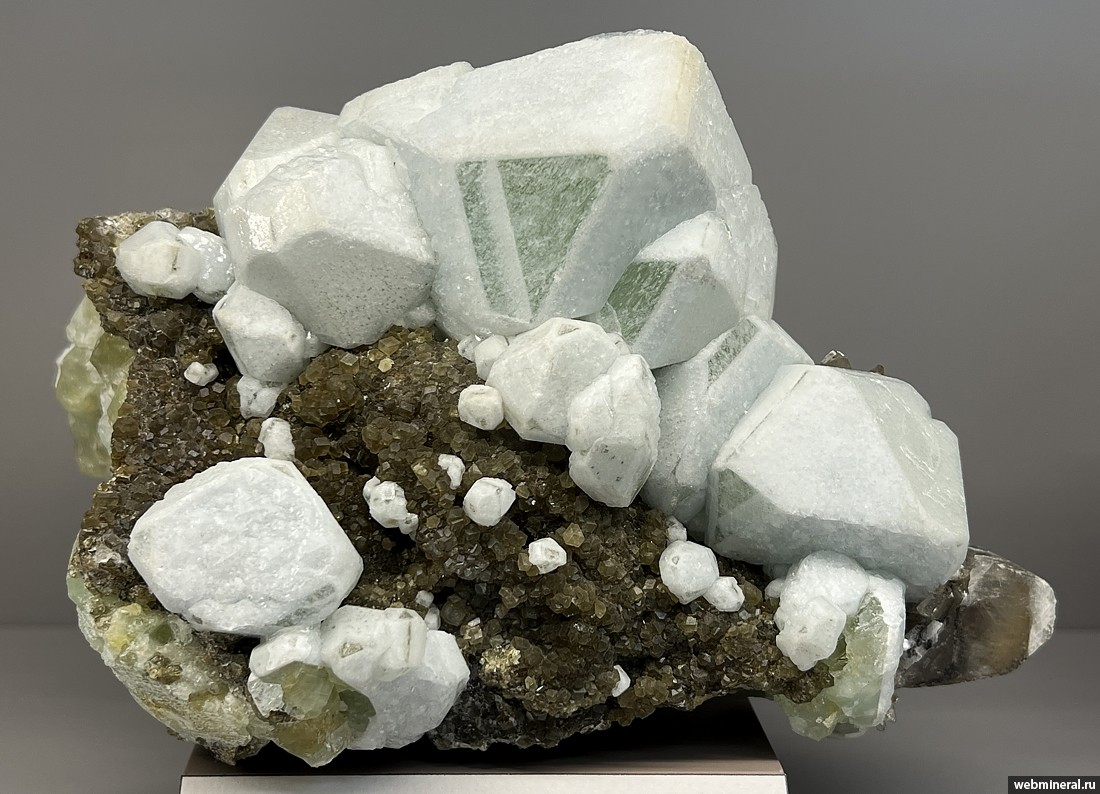 Крупные кристаллы датолита размером до 7 см на гроссуляре. Образец из коллекции музея "Планета".