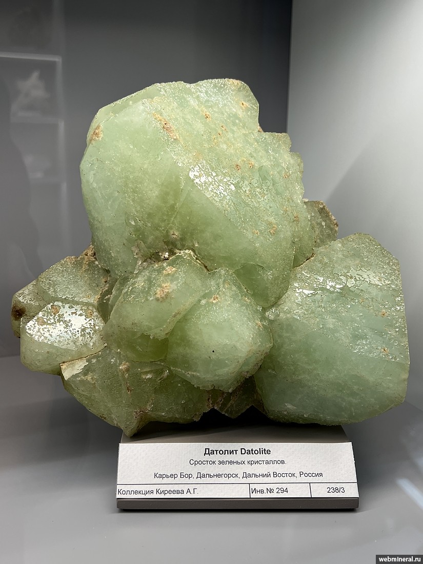 Друза крупных кристаллов зеленого датолита. Образец из коллекции Киреева А.Г.