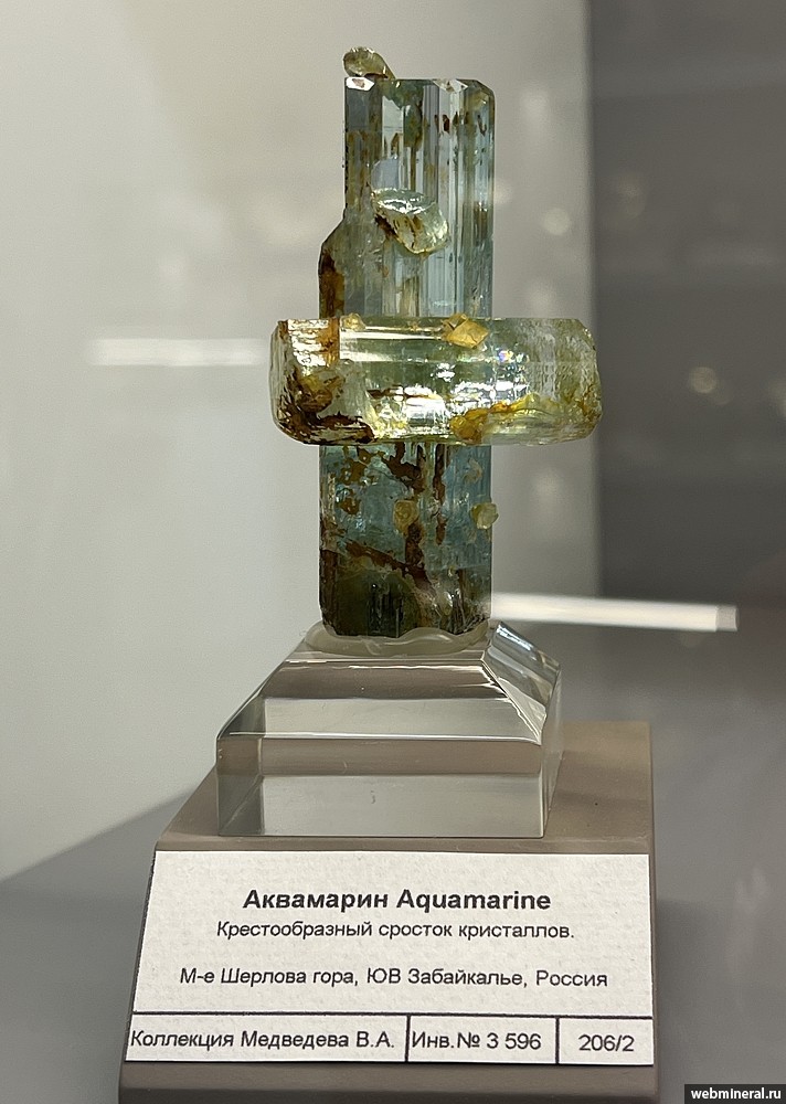 Крестообразный сросток кристаллов берилла (аквамарина). Образец из коллекции Медведева В.А.