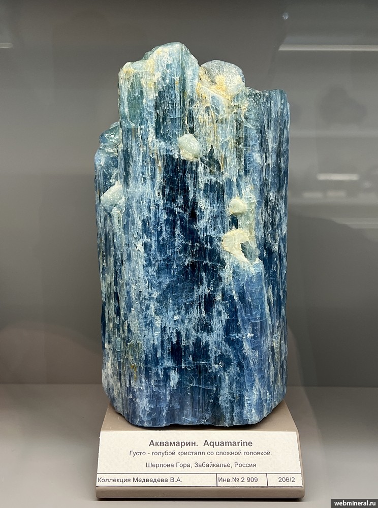 Кристалл берилла (аквамарина) насыщенного голубого цвета. Образец из коллекции Медведева В.А.