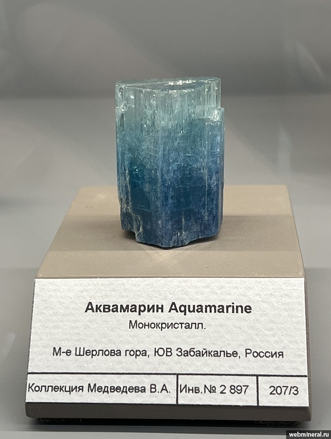 Кристалл голубого берилла (аквамарина). Образец из коллекции Медведева В.А.