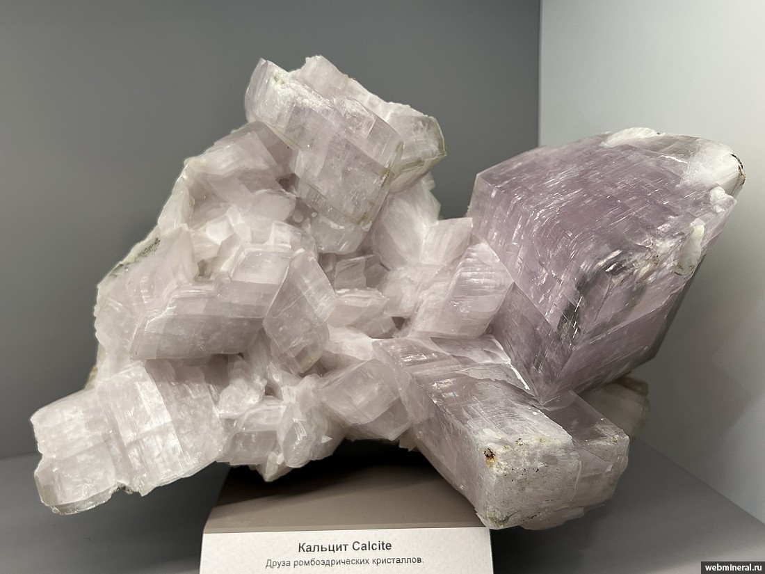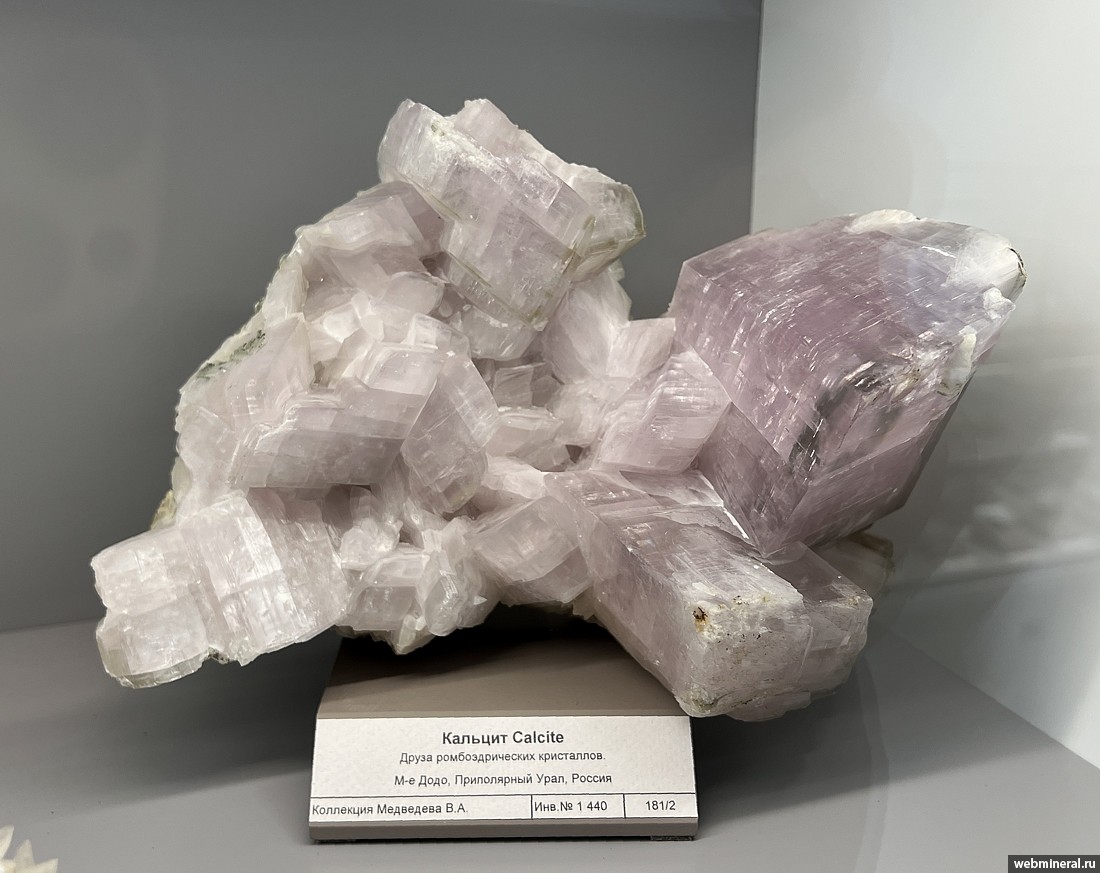 Друза ромбоэдрических кристаллов кальцита сиреневого цвета. Образец из коллекции Медведева В.А.