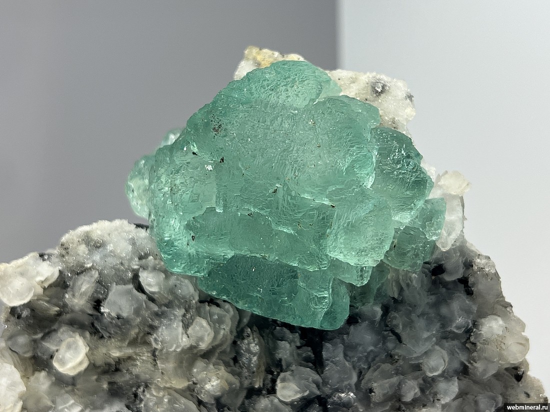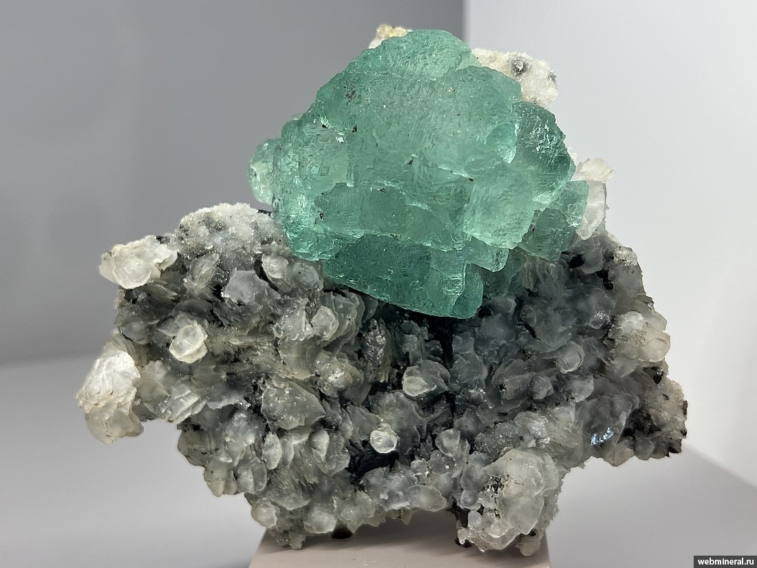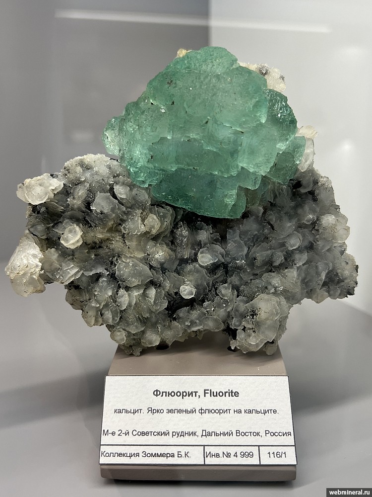 Ярко-зеленый флюорит на кальците. Образец из коллекции Зоммера Б.К.