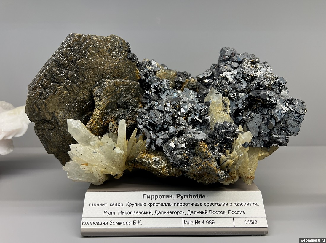 Крупные кристаллы пирротина в срастании с галенитом и кварцем. Образец из коллекции Зоммера Б.К.