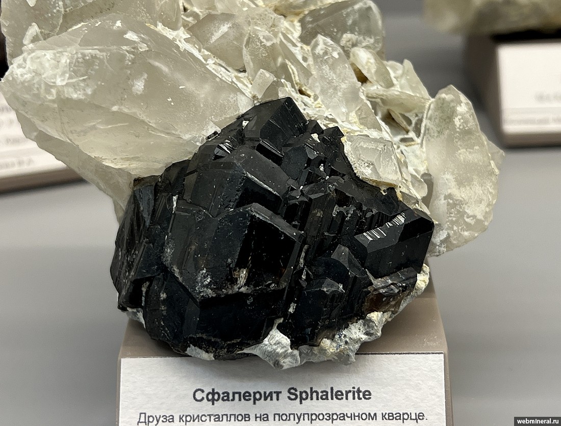Друза кристаллов сфалерита с кристаллами бесцветного кварца. Образец из коллекции Медведева В.А.