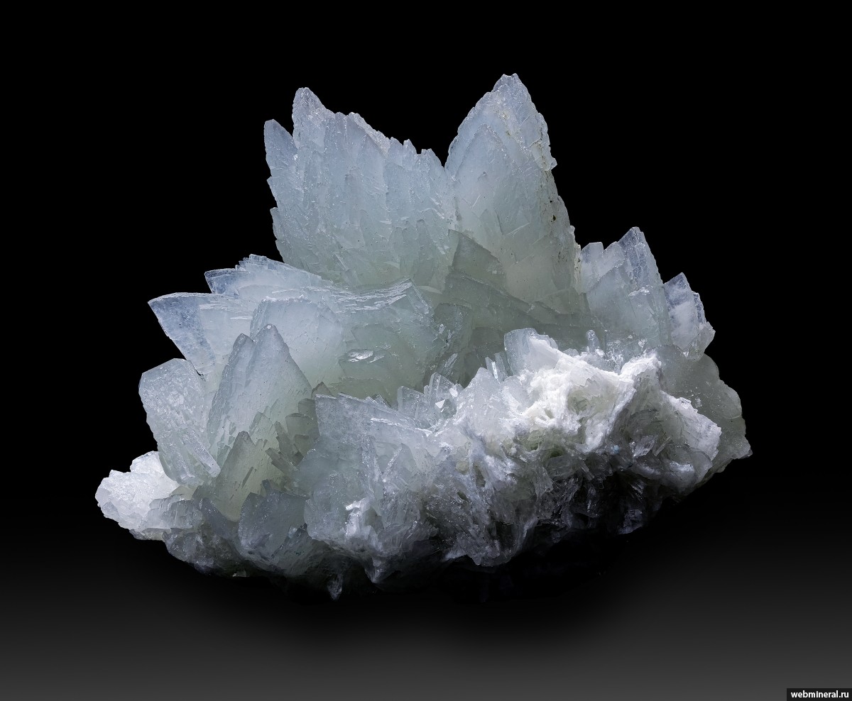 Сросток расщеплённых кристаллов серо-голубого барита. Образец демонстрирует цветовую нестабильность: после добычи, на солнечном свету, жёлтый цвет перешёл в серо-голубой. Сборы Абдуллаева Г.А., 2025 год.