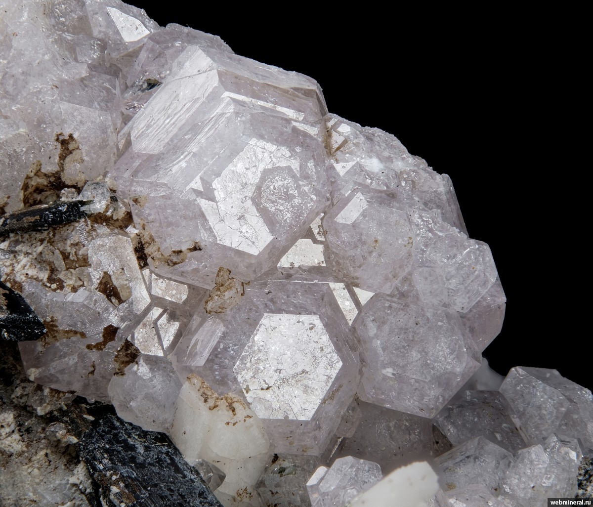 Кристаллы бледно-розового вадеита размером до 2 мм в полости полевого шпата, инкрустированного кристаллами чёрного эгирина. Сборы - август 2025 года.