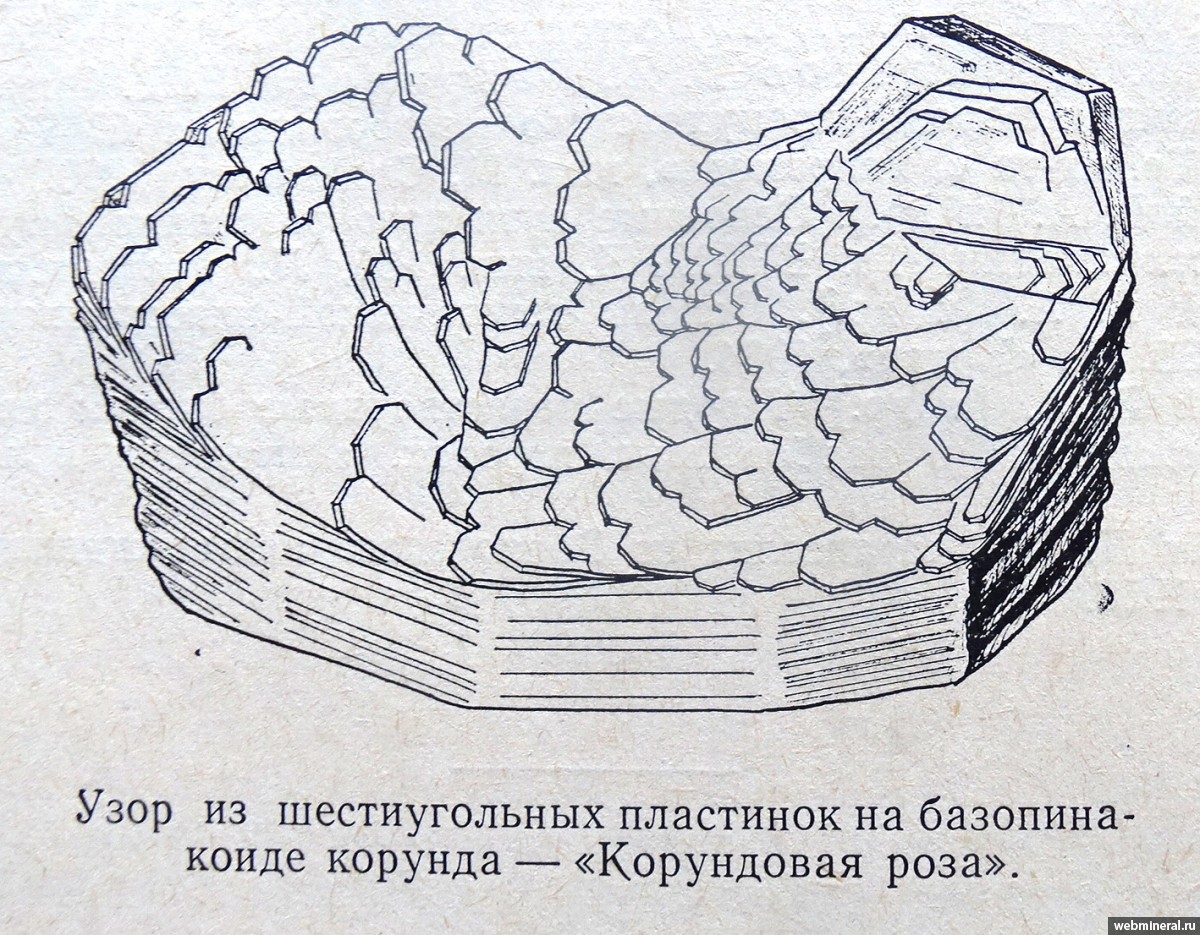 Штуф с расщепленным кристаллом корунда был добыт в 1974 году юными геологами С. Колисниченко и А. Довгополом и передан в Уральский Геологический Музей (Екатеринбург). На дополнительном фото приведен чертеж кристалла корунда из статьи: (Вертушков Г.Н. Таблитчатые кристаллы корунда из полевошпатовых жил Ильменогорских щелочных пород Урала...,1976). Вертушков Г.Н. после изучения кристалла назвал его корундовой "розой". Позднее штуф был отпрепарирован Тюлькиным В.Г.