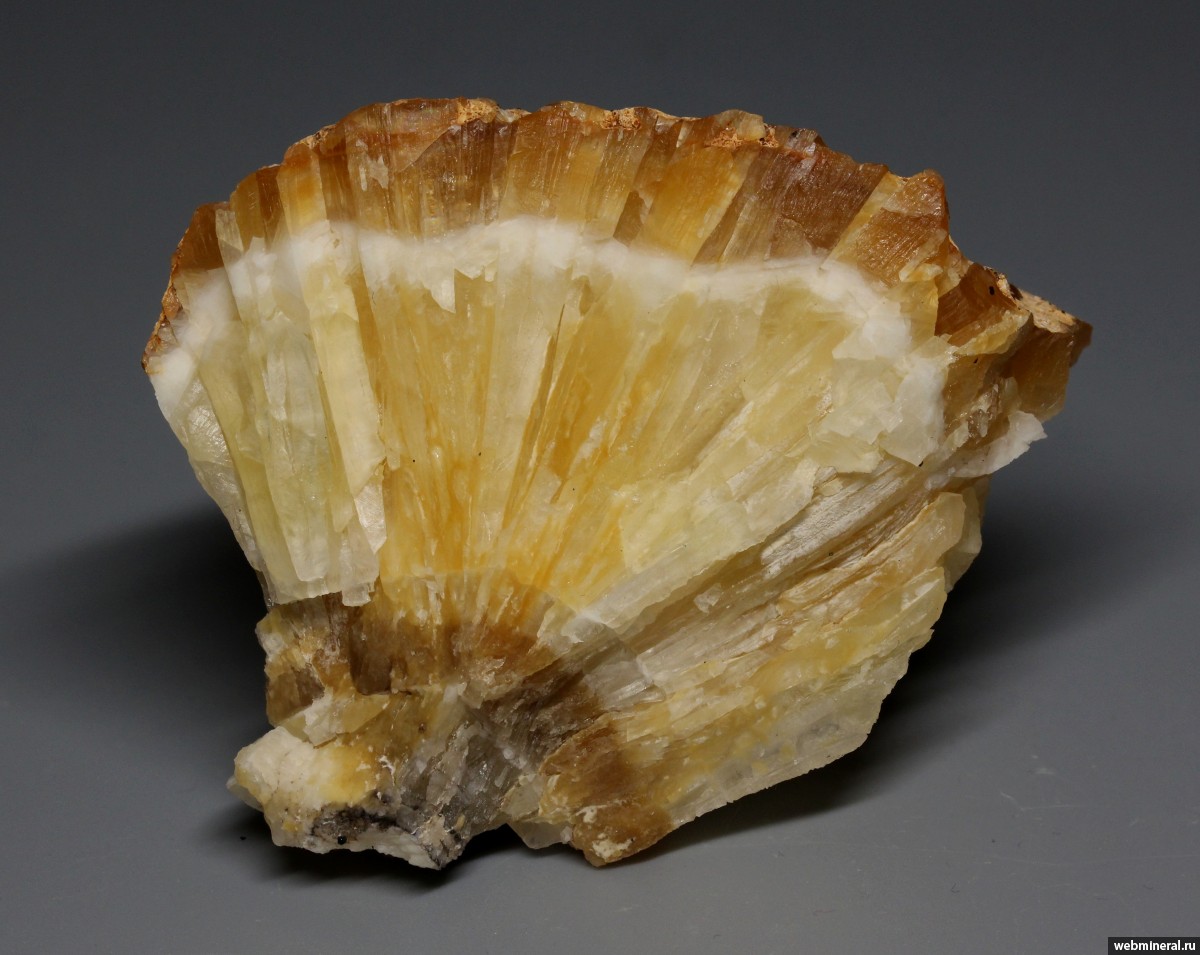 Почковидный агрегат (с гладкой внешней поверхностью) шестоватого кальцита различных оттенков медового цвета. Находка - 2025 год.