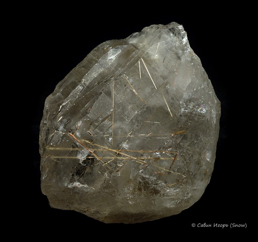 Включения игольчатых кристаллов рутила длиной до 3,6 см в кварце.