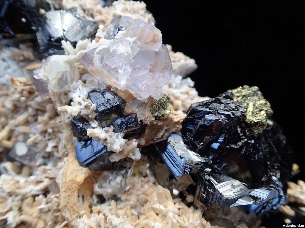 Фотография минерала Сфалерит, Кварц, Флюорит, Халькопирит. 2-й Советский рудник.