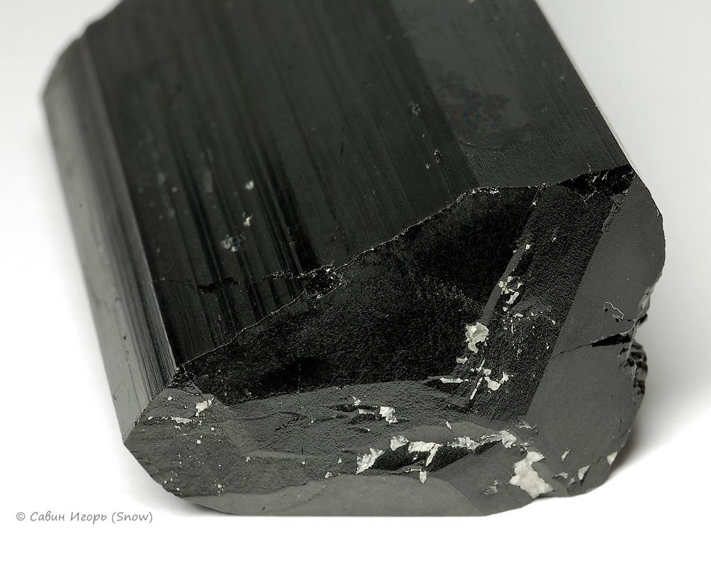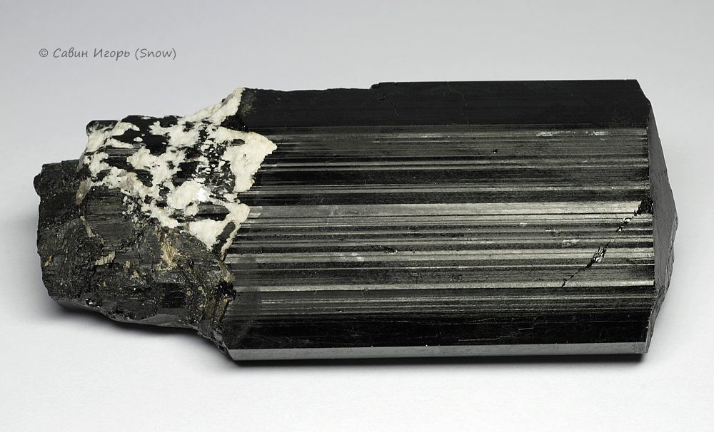 Кристалл черного турмалина (шерла). Шерл диагностирован на микрозонде. Диагностика: Касаткин А.В., 2009 г. Образец из коллекции Касаткина А.В.