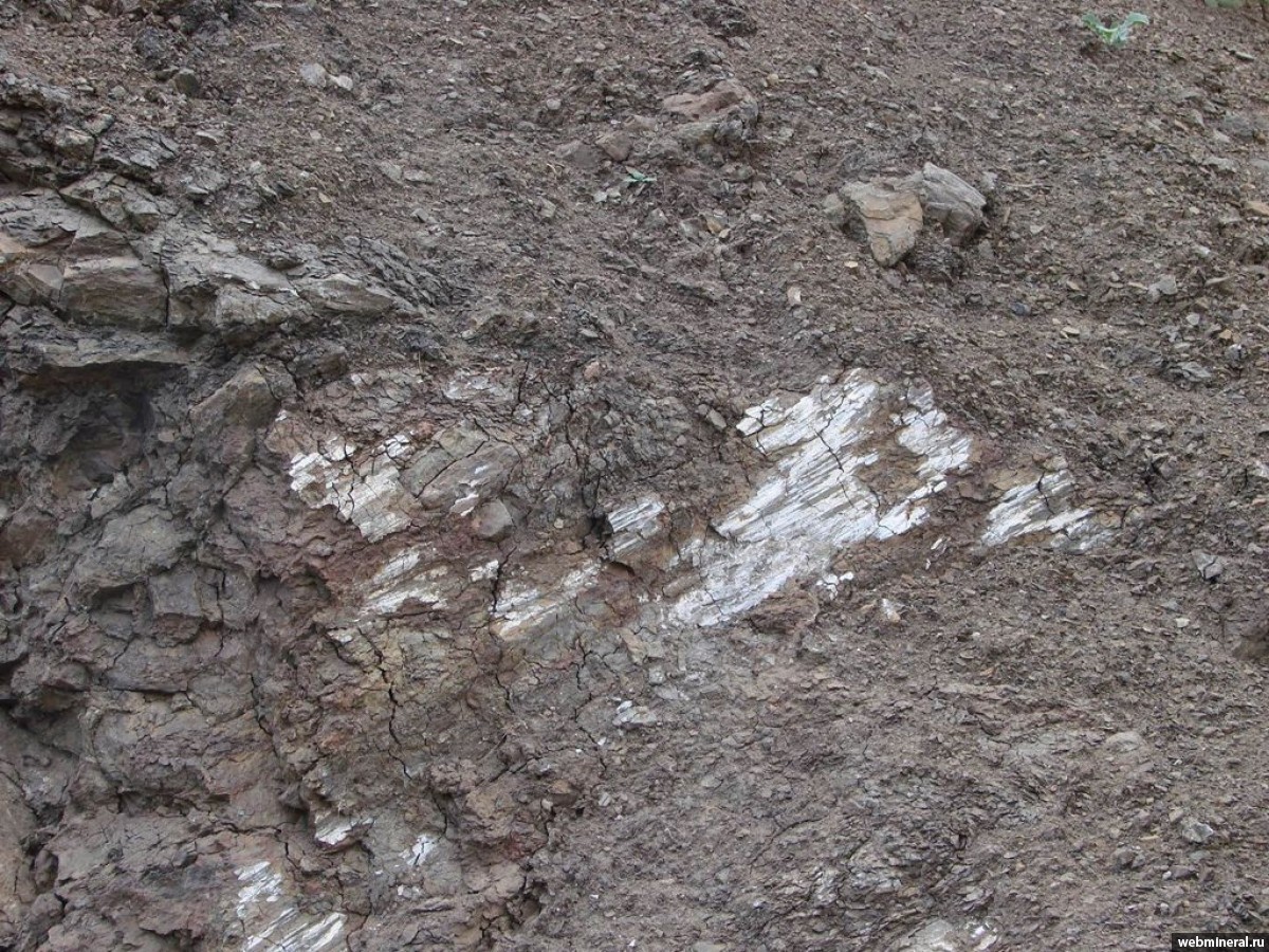 Белый диккит развит по трещинам скольжения в дислоцированном таврическом флише.