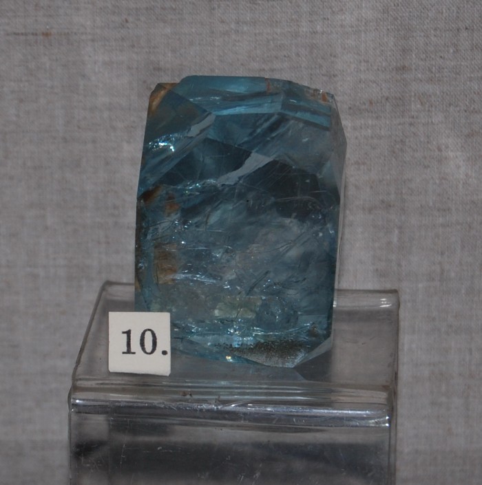 Кристалл топаза. Минералогический музей им А.Е. Ферсмана, № 22555, 1912 г. Фото - 2009 г и 2015 г