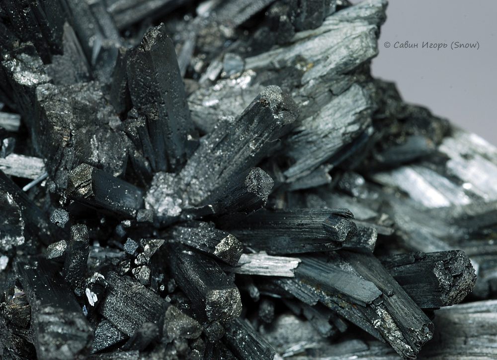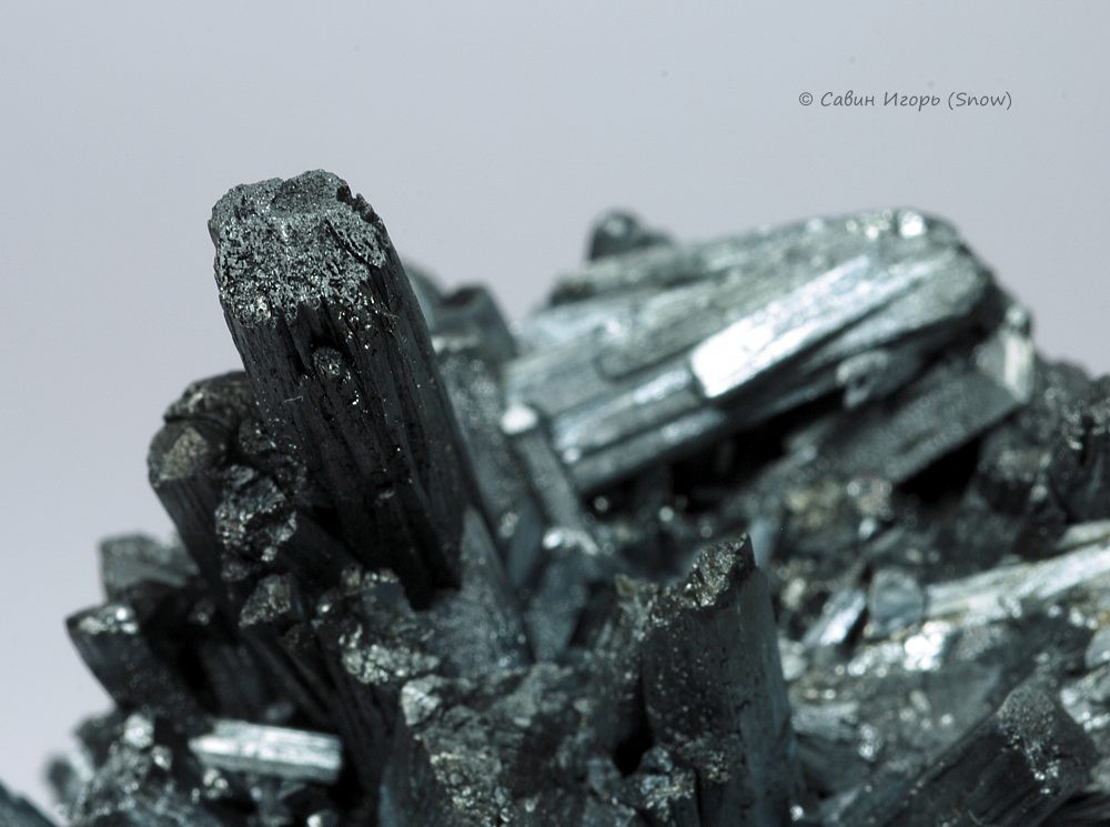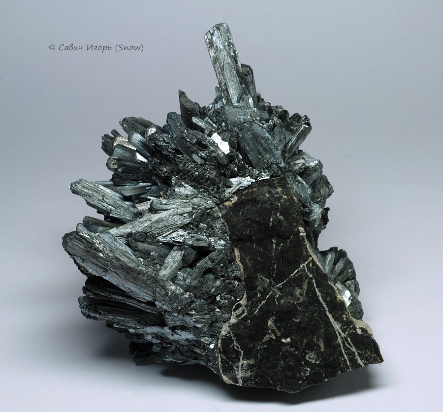 Кристаллы антимонита длиной до 2,8 см на породе.