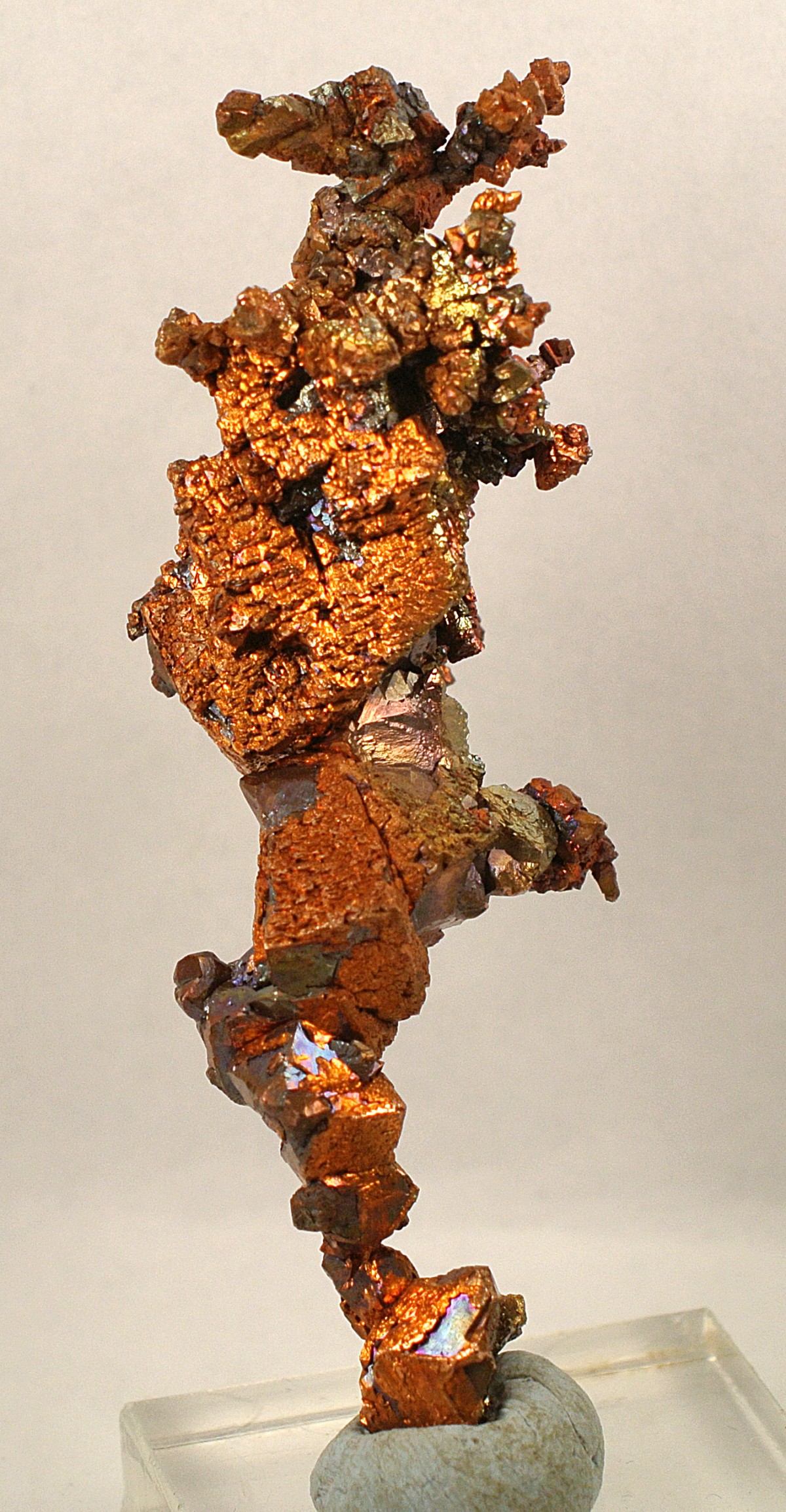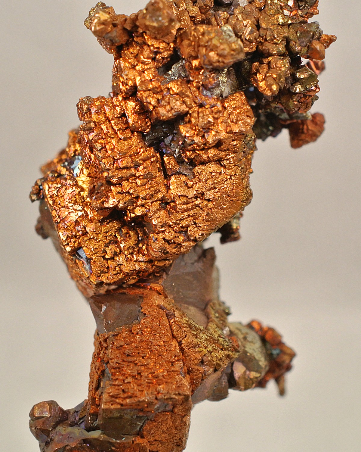 Дендрит самородной меди с замечательной автоэпитаксией меди поздней генерации на темные кристаллы ранней меди.